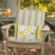 PAVOTS BLANCS DE PILLOW_MOD ET NOIRS FLORAUX EXTÉRIEURS CHICS SUR LA COULEUR DE PANTONE 2017 "JAUNE DE PRIMEVÈRE" AVEC LE MONOGRAMME NOIR.