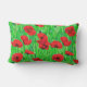 Coussin Lumbar dans un motif d'aquarelle semi-abstrait de pavots rouges dans un champ, contre les tiges vertes et les feuilles