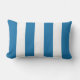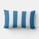 Un coussin lombaire gras présentant des rayures de cabane larges bleues cobalt et blanches vibrantes. Le motif classique de rayures verticales offre un style lumineux et prêt pour la station balnéaire, parfait pour se prélasser au bord de la piscine, les meubles de patio ou les chaises de pont. Un accent frappant qui apporte une couleur confiante à tout espace extérieur.