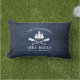 Beaux coussins lombaires extérieurs à thème rustique, avec votre nom de famille et "Lake House" ou tout autre texte souhaité, avec sa date et son emplacement établis. Ce design personnalisé et unique présente une silhouette blanche de barques croisées et de pins sur un imprimé de planches de bois aux couleurs bleues riches. Pour voir d'autres modèles comme celui-ci, n'hésitez pas à visiter ma boutique ici à "Zazzle.com/Rustic_Charm". Merci .