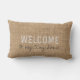 Rustique Bienvenue à ma petite maison Lumbar Coussin extérieur. Vous pouvez facilement modifier le texte.