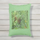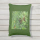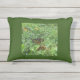 Un Coussin extérieur, Vert clair sur l'avant / Vert foncé, sur le dos, avec une photo d'un magnifique papillon Monarque, allongé dans l'herbe, dans le Centre,=(sur les deux côtés) de celui-ci.