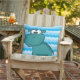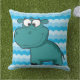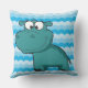 Coussin en plein air avec de jolies nuances d'arrière - plan bleu et un joli hippo bleu caricature !