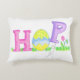 Coussin de Pâques d'amusement ! "Houblon" écrit dans une conception tirée par la main avec un oeuf de pâques et des fleurs de ressort parmi les lettres.