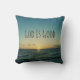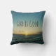 Dieu est un bon Coussin de Citation. Des citations/messages chrétiens inspirants et motivants pour lancer des oreillers. Ce design est décoré sur le thème de la plage (coucher de soleil sur l'océan) avec une teinte bleue pour une atmosphère rétro inspirée, encadrant la citation, "Dieu est bon".