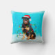 Dog Rottweiler Assis dans la neige avec le Coussin Carré de Noël de Noël de Noël de Noël de chapeau.une idée cadeau parfaite pour quelqu'un qui aime cette race de chien.
