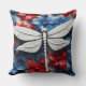 COUSSIN DRAGONFLIES ET FLEURS BLEU BLANC ROUGE PATRIOTIQUE