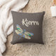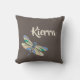 Coussin Dragonfly élégant en Brown et bleu avec nom