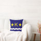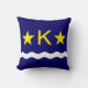 Lancer l'oreiller avec le design avec le drapeau de Kinshasa, capitale de la République Démocratique du Congo, le drapeau bleu avec la vague blanche, deux étoiles dorées et la lettre "K" au centre