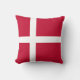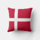 Le drapeau du Danemark est rouge avec une croix scandinave blanche qui s'étend jusqu'aux bords du drapeau ; la partie verticale de la croix est déplacée vers le côté du treuil.