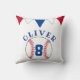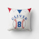 Drapeaux de baseball Ball Bunting Anniversaire de enfant Jetez l'oreiller. Le design a des drapeaux de baseball et de bunting dans les couleurs rouge, blanc et bleu. Ajoutez votre nom et votre âge.
