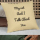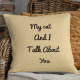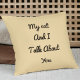 Ce coussin beige drôle et élégant, au thème du chat, présente la citation "My Cat And I Talk About You" dans un design typographique moderne. Un cadeau personnalisé parfait pour les amoureux de les chats, les seins, les colocataires et les mamans, il est personnalisable avec votre propre nom ou message. Idéal pour des canapés confortables, des chambres et des espaces minimalistes. Ajoutez un humour et un charme félin à votre décor maison. Idéal pour les anniversaires, les ménagères ou les cadeaux de moins de 50 $.