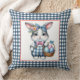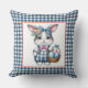 Coussin Easter Bunny with Basket of Eggs on Blue Gingham