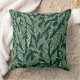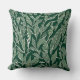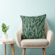 Ce coussin a un design moderne et sophistiqué avec un motif en feuilles naturelles dessiné en blanc sur un arrière - plan vert.