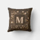 Elégant et élégant décorateur marron coussin avec feuilles or et fleurs et customisé avec votre nom monogramme/initiale.