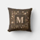 Coussin Élégant élégant Brown Gold Feuilles Monogramme
