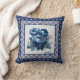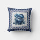 Coussin Élégant fleurs bleues chinoiserie toile monogramme