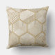 A seamless geometric pattern throw pillow featuring a refined grid of hexagonal shapes outlined in metallic gold. Each hexagon contains intricate designs such as parallel lines, cross-hatching, and abstract geometric motifs. The background blends soft cream and beige tones with a subtle marble-like texture, creating a sophisticated, luxurious aesthetic.