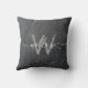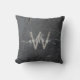 Coussin Élégant Gris de Charbon Stone Script Monogramme