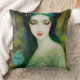 Coussin Élégant Imaginaire Portrait femme en vert et bleu