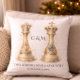 Coussin Elegant King Queen Couple Gift Gold Chess