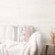Ce design se compose d'un élégant marbre blanc et gris aux accents dorés et roses, blancs et gris rayés. #marbre #style #décoration #élégance #maison #coussin