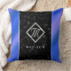 Coussin Élégant marbre noir et monogramme Royal Blue Foil