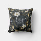 Coussin Élégant Mariage de couronnes florales noir blanc e