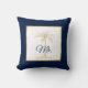 Coussin Elégant Marine Blue Gold Palm Tree Mariage M.