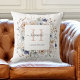 Coussin Elegant Monogram Pretty Beige Blue Flowers Floral
