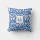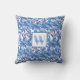 Elégant oreiller bleu floral jeté avec monogramme. Un joli motif d'aquarelle fleurie d'été égayera toutes les chambres. Facile de changer le monogramme et le nom de la page du produit.