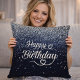 Celebrate her special day in style with this elegant navy glitter “Happy Birthday” throw pillow. Featuring beautiful white script lettering with delicate heart accents on a sparkling dark blue background, this decorative cushion adds glamour and warmth to any birthday celebration.