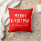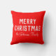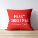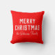 Un coussin de Noël classique avec une couleur rouge vif. Doté d'un texte blanc moderne et audacieux qui dit "Joyeux Noël", à côté d'un nom manuscrit personnalisé ou du nom de famille du destinataire, il est une touche attentionnée et unique pour les cadeaux de vacances.