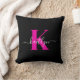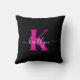 Coussin Élégant Noir Hot Rose Script Monogramme
