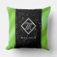 Coussin Élégant noir marbre et citron vert Monogramme à hu