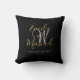 Coussin Élégant Noir Script Monogramme Mariage initial