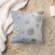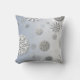 Elégant design d'oreiller à thème hivernal avec des flocons de neige stylisés sur arrière - plan argent.