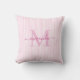 Coussin Elegant Pink & White Stripes Monogram Name