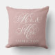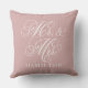 Coussin Élégant Rose Rose Script Mariage M. et Mme