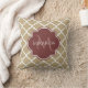 Un élégant motif marocain en quatrefoil jetez un oreiller avec un badge de couleur bordeaux que vous pouvez personnaliser en ajoutant votre nom et monogramme initial à. Il fait partie de la collection Warm Sand and Spiced Apple Spring Quatrefoil Collection