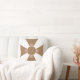 Elégante croix beige marron sur Coussin blanc. Une croix est un symbole de l'amour divin infini qui s'est répandu dans toutes les directions, nord, sud, est et ouest.