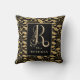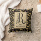 Un cadeau parfait pour réchauffer la maison ou l'hôte. Ce coussin R monogrammé noir et or est doté d'un motif feuille classique. Customisez le nom et la date. Si vous le souhaitez, vous pouvez quitter la date.