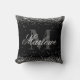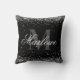 Elégante Parties scintillant Argent Noir et Blanc Monogramme jetez oreiller avec un nom de script de calligraphie personnalisable et un modèle monogramme gras. Un coussin d'accent mignon pour une chambre pour filles ou une chambre d'université.