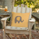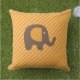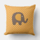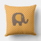 Coussin de plein air avec une bande diagonale orange colorée et sherbet avec un éléphant marron aux oreilles orange.