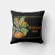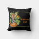 Bienvenue à la saison automnale avec cet oreiller fantaisiste avec aquarelle illustrée moisson boisée elfe / nymphe perché sur de grands citrouilles sur arrière - plan noir avec texte orange personnalisable