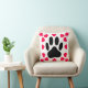 Conception originale d'un chien empreinte de patte aux formes cardiaques. Coussin décoratif.