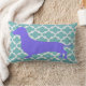 Coussin de bois unique avec une silhouette violette d'un dachshund à l'avant et à l'arrière.