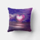 Jetez un oreiller avec mon design 3d d'un beau coeur rose flottant sur les eaux réfléchissantes avec un ciel bleu avec des nuages roses et blancs au-dessus.