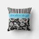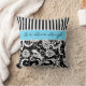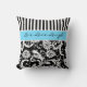 Ces damassé florale bleu-clair, noire, et blanche chic et motif rayé 20" x20" coussin a le texte customizeable qui indique "vivant, rire d'amour" là-dessus, mais vous pouvez le customiser cependant que vous voulez. Si vous avez n'importe quelles demandes, envoyez svp niteowlstudio@gmail.com.