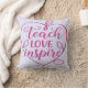 Belle calligraphie en prune profonde disant "Enseigner. Amour. Inspirer." avec une ligne de séparation coeur ou crayon. Parfait pour les cadeaux d'enseignants, la décoration de classe ou les vêtements inspirants.